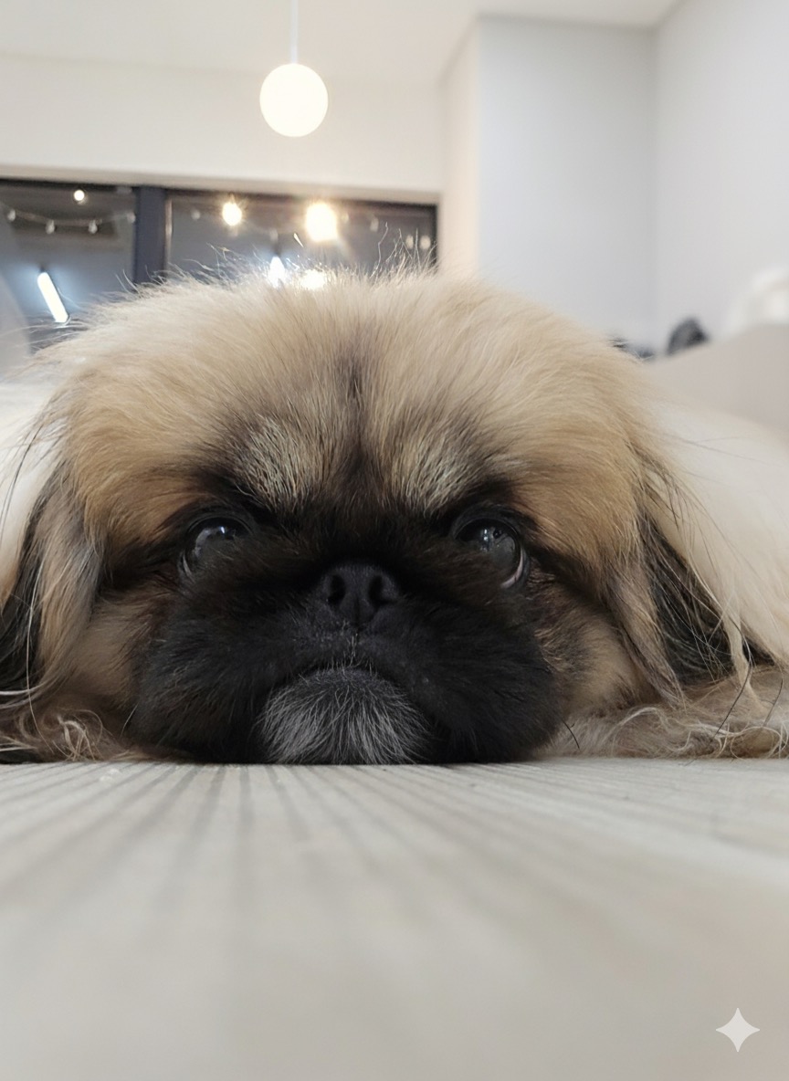 よく床に顔を置いてぺたんこになってるぽぽちゃんの