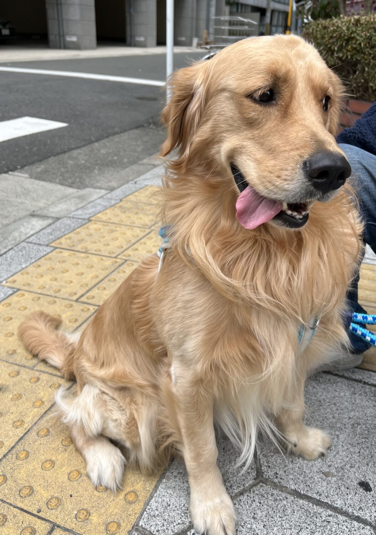 出勤前にお散歩しているゴールデンレトリバーの「りょうくん」に