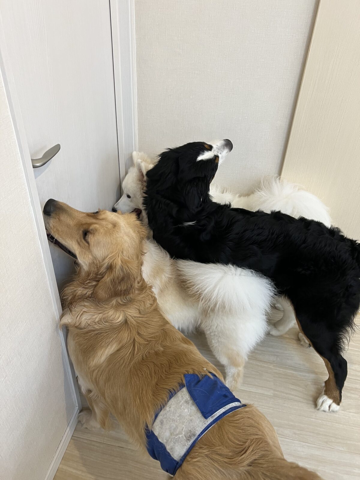 営業終わりに大型犬達が遊び疲れてドアの前に居てたので
